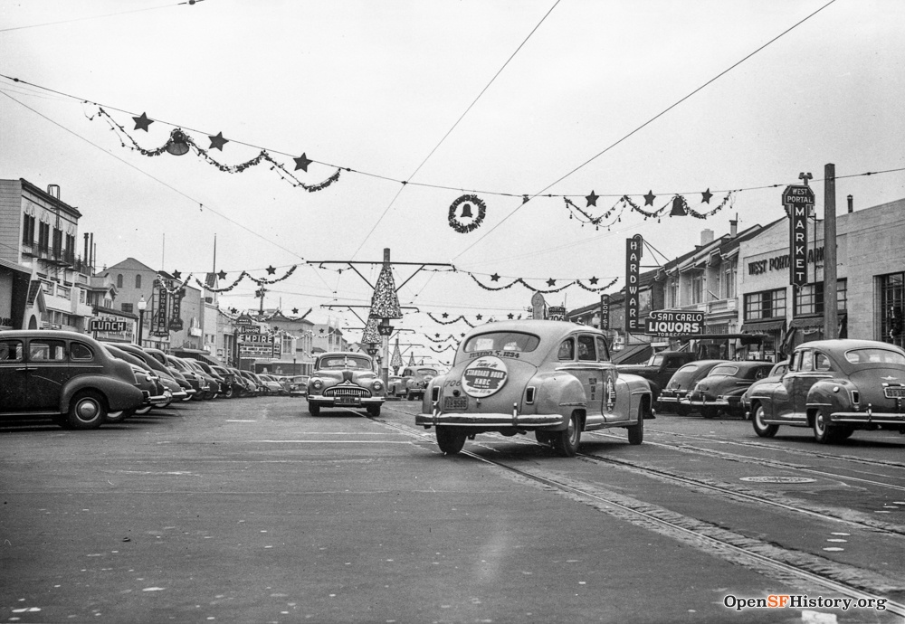 West Portal Avenue, San Francisco, Christmastime, 1947 West Portal Avenue, San Francisco, Christmastime, 1947 Step into San Francisco's Christmas past in the gallery of historic photos above. Christmas is always wonderful in San Francisco, but when you look at photos and hear stories from decades past, the spectacle seems more grand and its sparkle more dazzling. The holiday was special in the 1950s, '60s and '70s: If you grew up in the city, you may remember driving along the Marina to see the lights on the boats and the houses and hearing the sound of carolers riding the cable cars down Hyde Street. And you will undoubtedly never forget the Christmas tree glistening in the stained-glass dome of the City of Paris, nor Emporium's over-the-top fanfare. "The Emporium used to do these rooftop carnivals for the kids, which seems like a lot of liability now but pretty magical for the kids," said Nicole Meldahl, executive director of the Western Neighborhoods Project. Meldahl has helped curate and preserve historic images of San Francisco for her nonprofit and the ones of Christmas display many long-gone traditions. "The firehouses used to compete with one another with these fabulous decorations," said Meldahl. "That was sad to see it go. Eighteenth Avenue was known was Christmas Tree Lane and today there's no neighborhood that springs to mind that does a coordinated effort, but there are still some over-the-top displays." She added: "Christmas is still magical in San Francisco, but when we view what happened in the past through the lens of Kodachrome photographs from the past, there's a wonderful nostalgia that comes alive." To bring alive that magic of Christmastime, we reached out to the San Francisco Remembered Facebook group and invited its 84,000 members to share their memories. The thread quickly grew to more than 250 comments and below we highlight many, showing Christmas was a really big deal in San Francisco. |